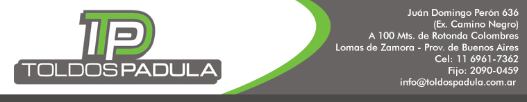 Toldos Padula, una empresa que desde 1927, se dedica a la confección, provisión y colocación de toldos, lonas para camiones, comercios y todo tipo de cerramientos en lona, confeccionados en telas vinílicas y acrílicas para uso interior y exterior, utilizando productos de primeras marcas (Pampero, Plavilon, Nildatex, Litoral, El Zonda).